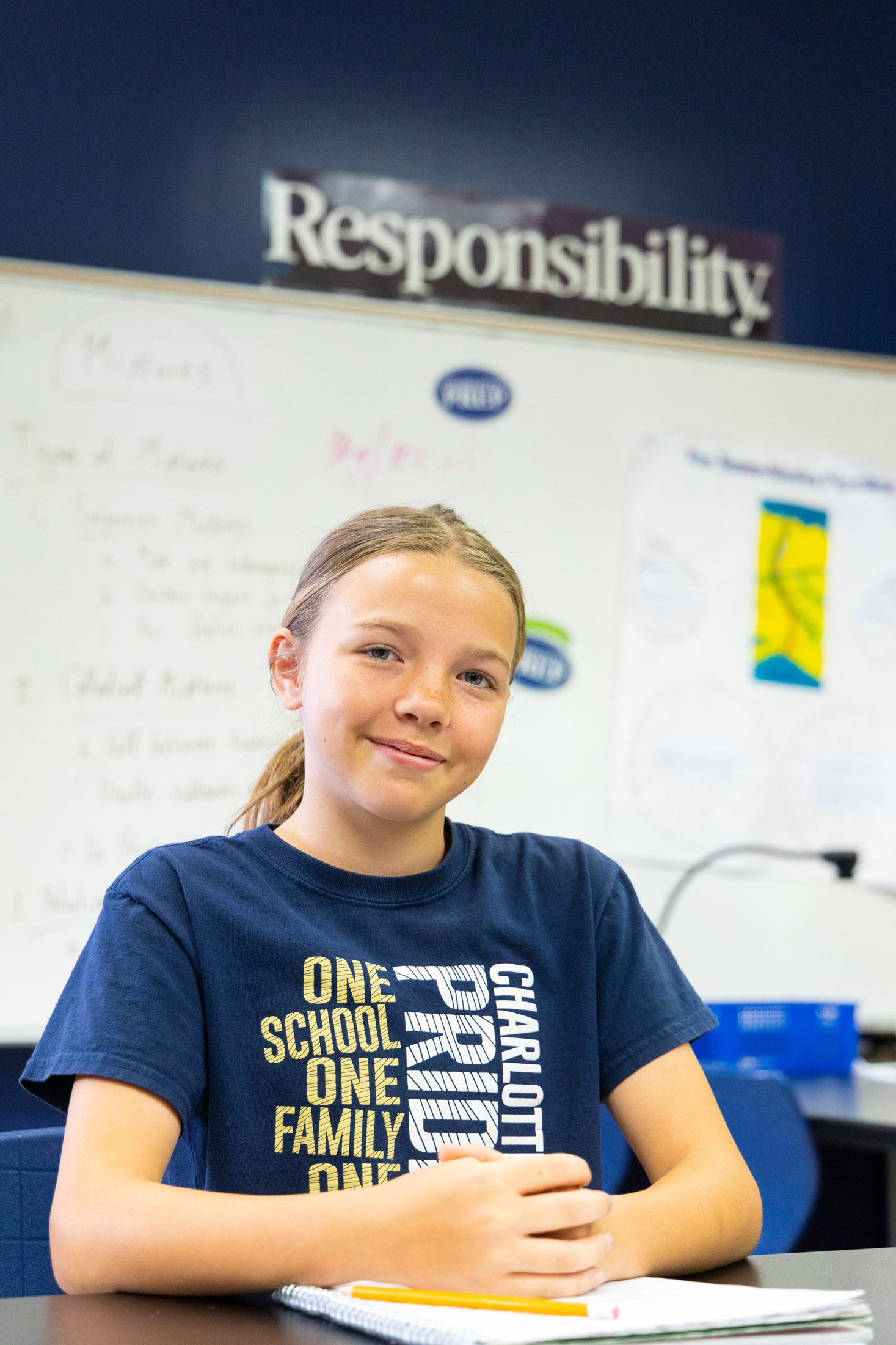 Middle School students are looked up to on our campus. They understand the younger students are observing them and they are key role models in building and nurturing the kind culture Charlotte Prep has created. These life skills set our students apart as mature and poised adolescents and prepare them for futures bright with opportunity.