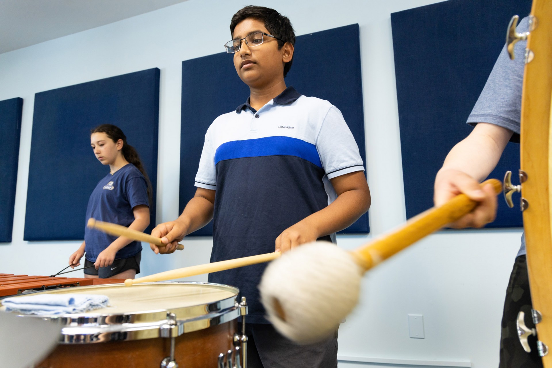 The goal of music instruction is to hone skills such as confidence, responsibility, teamwork, discipline, and organization, and to ignite creativity in our students. Instruction focuses on basic elements of music such as rhythm, harmony, melody, and intellectualizing music—hearing, reading, and writing. Students learn the cultural and historical contexts of various works to discern and appreciate stylistic differences and ultimately develop their musical taste.